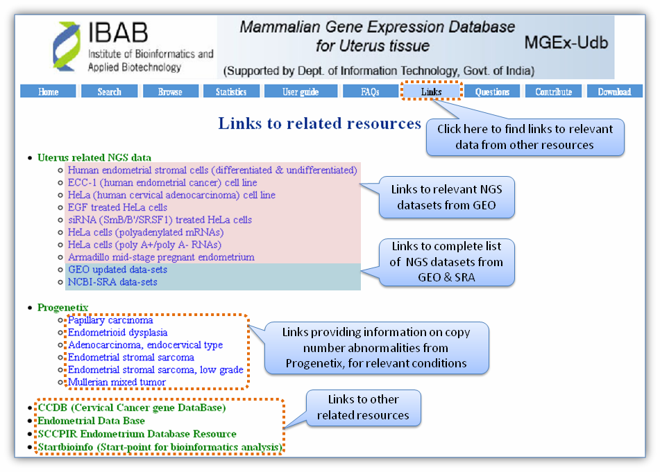 MGEx-Udb is a gene expression database for various physiological and pathological conditions in mammalian uterine tissues. Searching the database Browsing the database Figures: