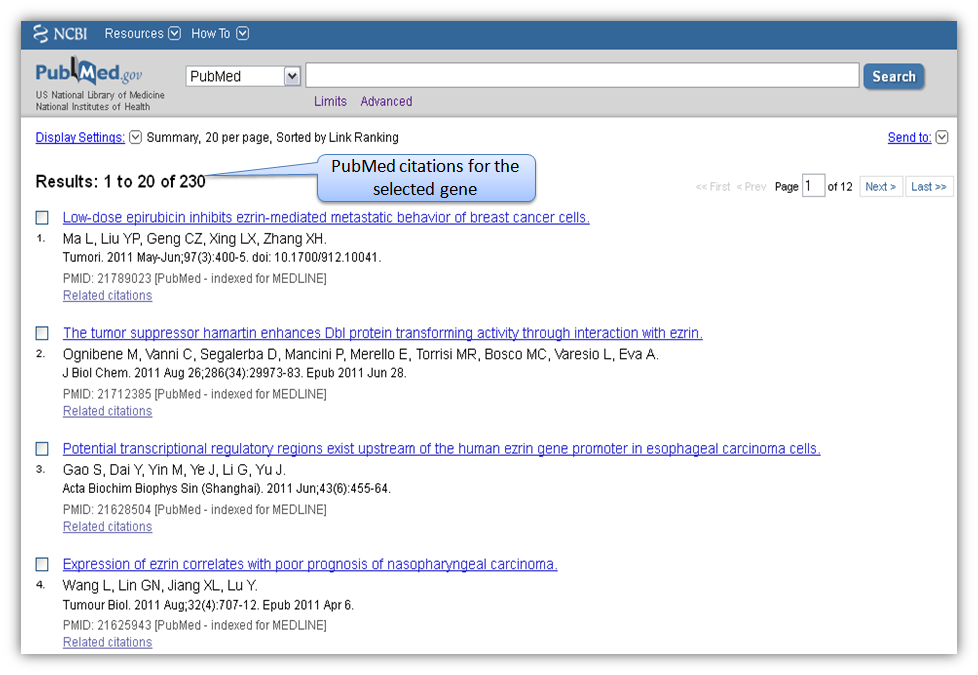 Figure M. Result page for gene-based search